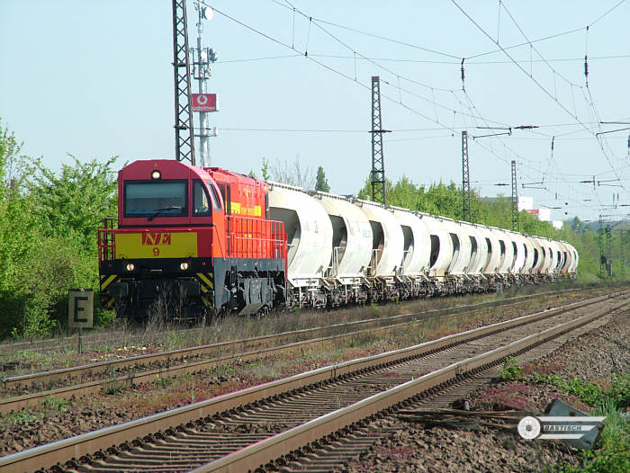 27.03.2007 - Der Kalksteinmehlzug der Neusser Eisenbahn verließ die Angertalbahn gegen 18:15 Uhr ![]() Leihlok - Vossloh 1001208 |