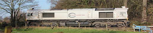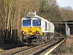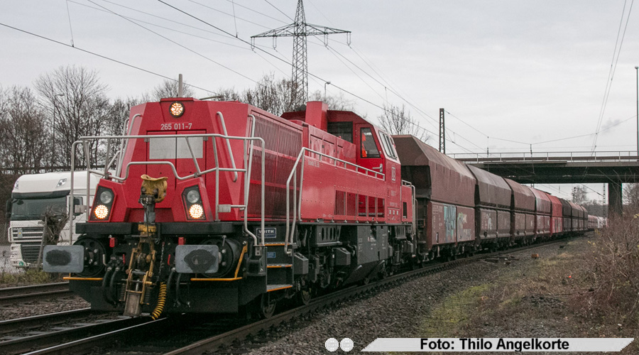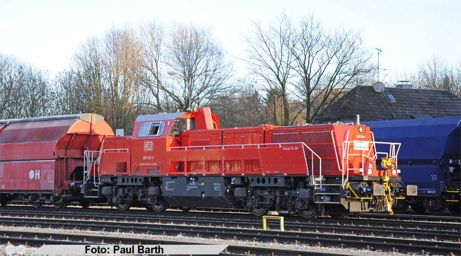 | Am 1.Februar 2014 tauchte dann erstmals eine DB-Gravita auf der Angertalbahn auf. Die Baureihe 265 hat die Nachfolge von "Beci" und "Tilly" respektive TX Logistik-Mietloks angetreten. Die Aufnahme stammt vom 2.Februar 2014 (siehe auch >>KLICK) | |