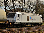 | 14.01.2014 RheinCargo-Lok DE 803 (285 114) - hier in Krefeld Linn im Kalkverkehr der Neusser Eisenbahn |