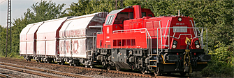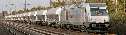 | Die Neusser Eisenbahn *fährt Kalksteinmehlzüge zu den RWE Rheinbraun Kraftwerken im rheinischen Braunkohlenrevier * EVU der NDH (Neuss Düsseldorfer Häfen) - mittlerweile im Zusammenschluss mit HGK (Häfen und Güterverkehr Köln AG) >>RheinCargo |