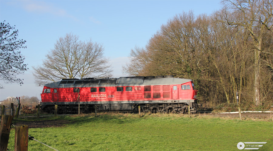 | 26.01.2014- 232 131 v.l.n.r. 13:11 Uhr mit Kalkwagen kurz vor der Abzweigstelle Tiefenbroich / 13:58 Uhr mit Leerwagen bei Km 1,0 [2] / 14:01 Uhr mit den Leerwagen nahe km 2,0 / 14:55 Uhr LZ kurz hinter Steinkothen / 15:10 Uhr an der Abzweigstelle Tiefenbroich und gegen 15:15 Uhr am Bahnübergang Kalkumer Strasse in Lintorf.TKSE 541 mit Leerwagen bei km 0,9 [1] - Unterwegs war auch ThyssenKrupp Lok 549 |