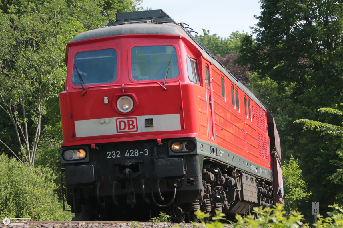 232 428 am 12.Mai 2018 unschwer zu erkennen bei km 1,0 mit Kalk Richtung Abzw. Tiefenbroich