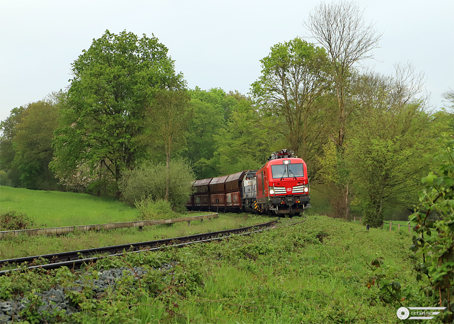 Leerwagen abgestellt - Die beiden Loks auf dem Weg zum Kalkzug für HKM (dort Reihenfolge gewechselt)