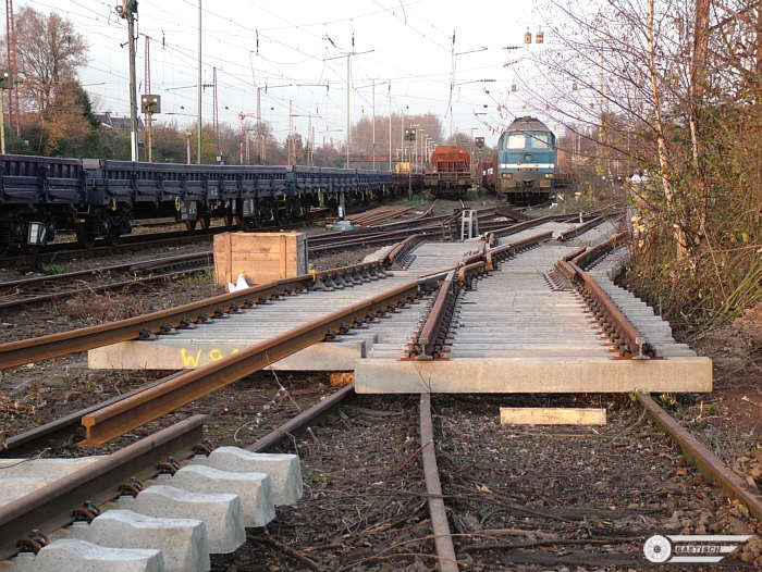 | Am nördlichen Kopf des Lintorfer Bahnhofs sind direkt drei unbrauchbar gemachte Weichen. Damit ist dort nicht mehr Wechsel vom westlichen Teil in den östlichen möglich. Weiterhin ist die Weichenverbindung aus der Gegenrichtung des Richtungsgleises in das Duisburger Richtungsgleis unbrauchbar gemacht worden. | Bedienung des Anschlusses VW Nordrhein. Übrigens wurde die Weiche zum Anschluss anlässlich der Inberteibnahme des ESTW auf Handbetrieb umgestellt. >> Link zu Aufnahmen von der Anschlussbedienung | ||||||