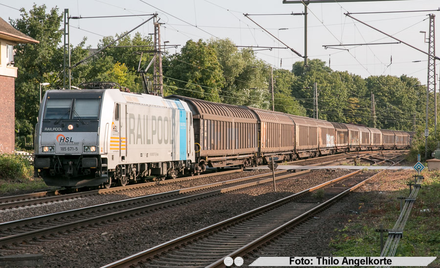 | 7.August 2015 - 185 671 am Bahnübergang Sandstrasse - Fahrtrichtung Duisburg | |