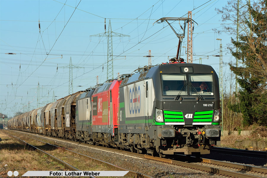 8.Januar 2016 - 193 212 mit 185 405 und 193 217 durch Lintorf und