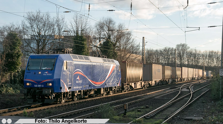 145 087 "Barbara" am 9.Januar 2016 am Bahnübergang Sandstrasse in Ratingen West