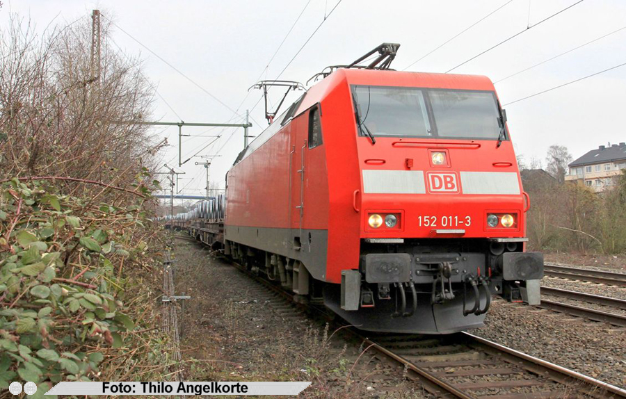 11:55 Uhr - 152 011 kurz vor dem Bahnübergang Sandstrasse in Ratingen