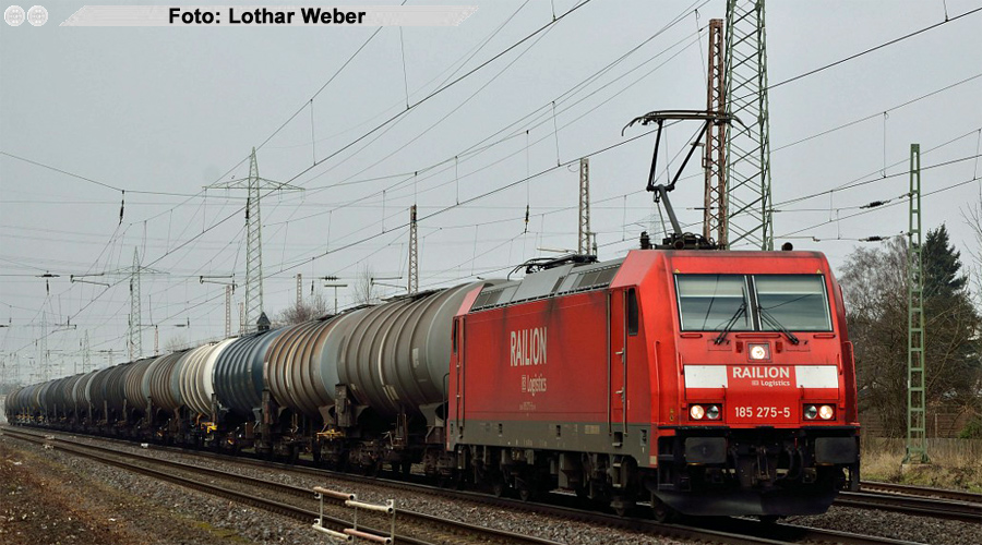 und zur gleichen Zeit durch Lintorf: 185 275 mit Kesselwagen Richtung Ratingen West