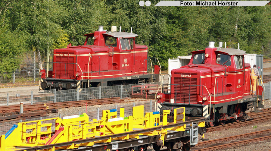 13.August 2013 - 260 588 und 260 773 auf den Gelände der Deutsche Bahn Gleisbau Höhe Haltepunkt Duisburg-Entenfang